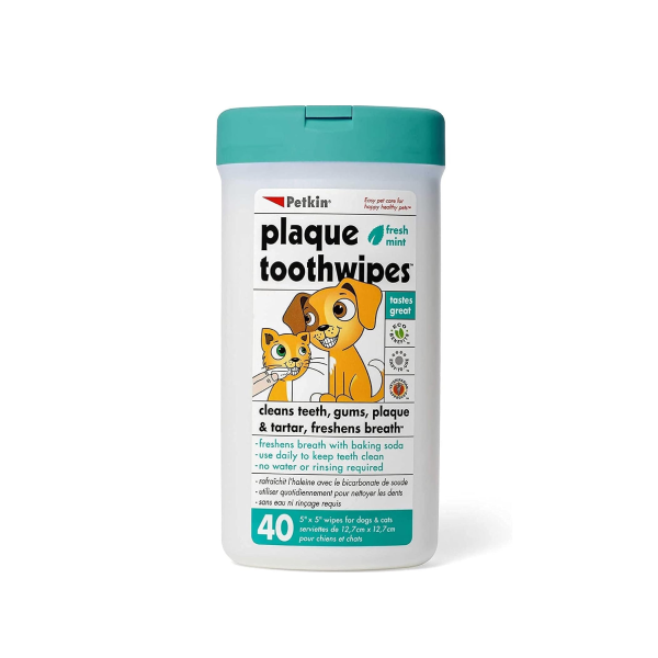 Petkin Plaque Toothwipes Fresh Mint 40 Wipes for Dogs &…