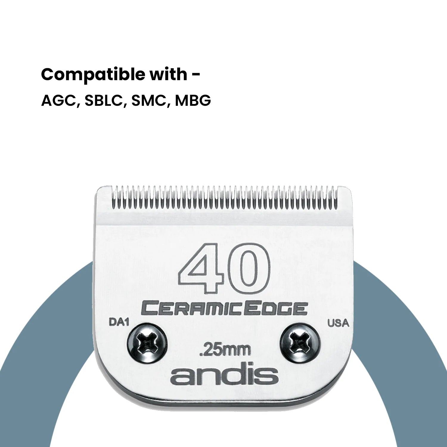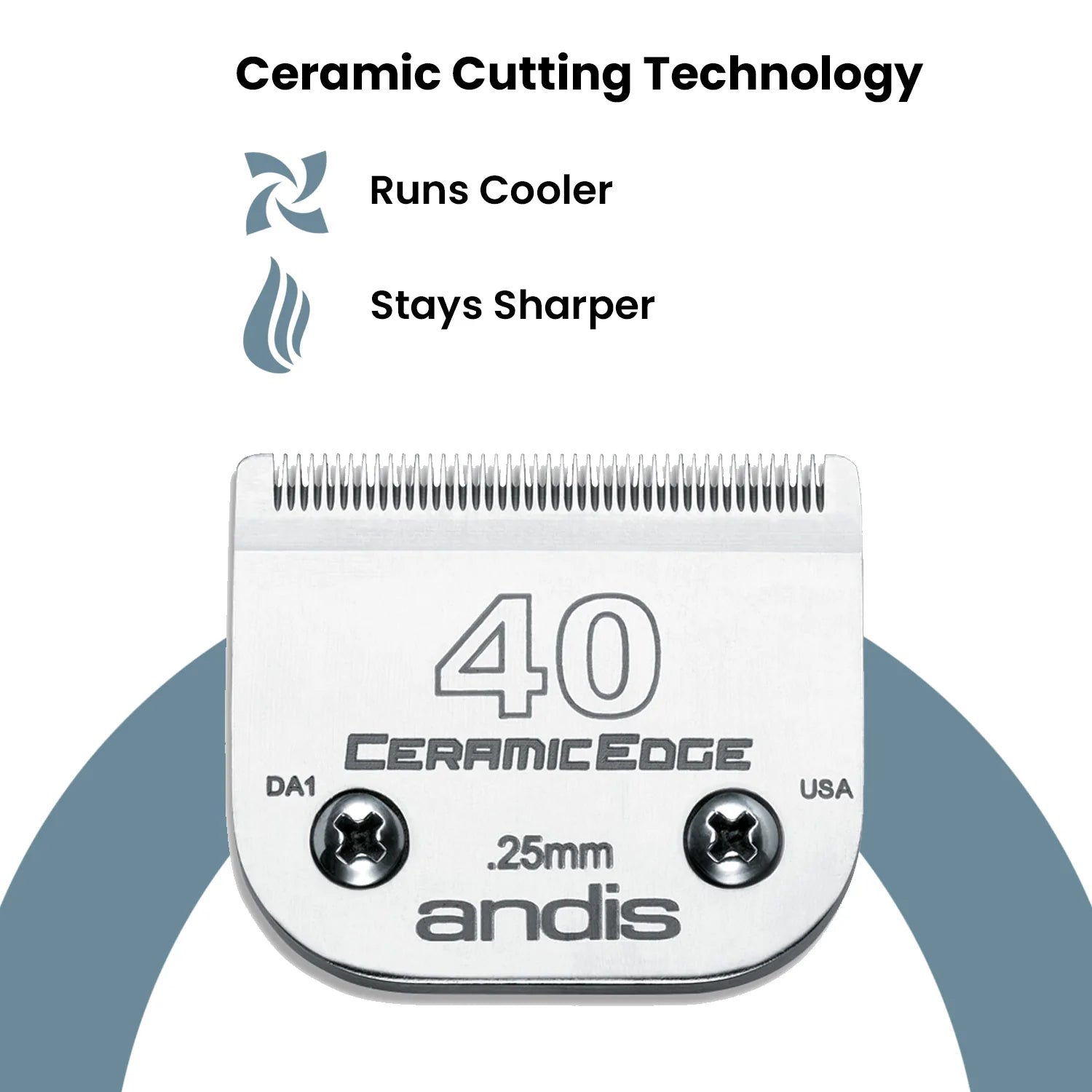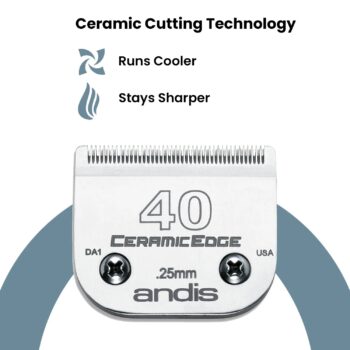 Andis Professional Grade Ceramic blade runs cooler and lasts longer. CeramicEdge blades uses an improved ceramic formula that works cooler and lasts sharper. Appropriate, for dogs and also for other medium-sized pets. They are compatible with detachable blade clippers. Performance-wise these clipper blades are meant for optimum pet grooming. The low heat transfer and friction index of ceramic keeps these clipper blades running 75% cooler than traditional steel blades. This allows you to use less coolant to clip longer and faster with less downtime.