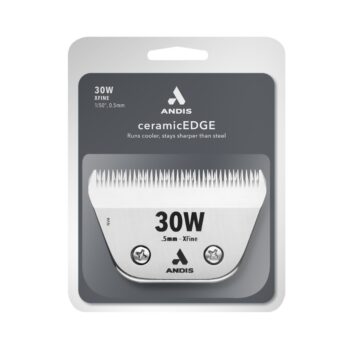 Time is money and nowhere is that truer than in the pet grooming salon. Let the new Andis ceramicEDGE Wide Blade lineup help you improve your grooming routine. Designed to make professional grooming faster and more efficient, Andis ceramicEDGE Wide Blades are 36% wider than standard blades and feature a one-of-a-kind 31-tooth ceramicEDGE cutter blade – 16% more than leading competitors – which provides a smooth, clean finish. Plus, ceramic cutters run cooler and stay sharper longer. The lower blade is constructed of high quality, carbon-steel that resists corrosion for durability and long life. Perfect for grooming larger dogs, equine and livestock, these blades are compatible with all professional Andis detachable blade clippers.