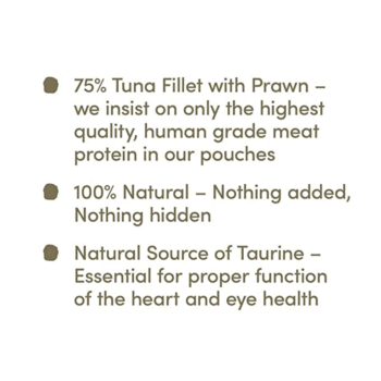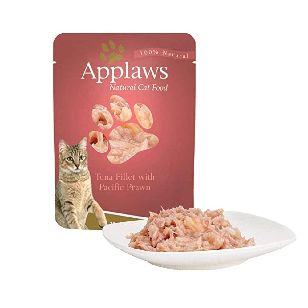 Applaws Cat Pouches are a convenient way to give your cat the highest quality meat protein. You can even see the succulent Tuna with Pacific Prawn in this recipe through the window on the front of this Applaws pouch.