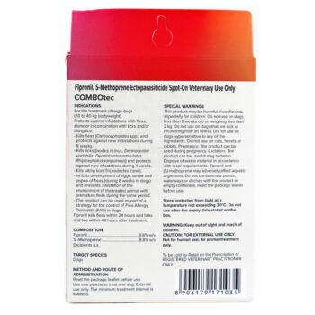 - Effective Flea Control: Beaphar COMBOtec Spot-On for dogs offers a potent combination of Fipronil and (S)-Methoprene, swiftly controlling flea infestations.