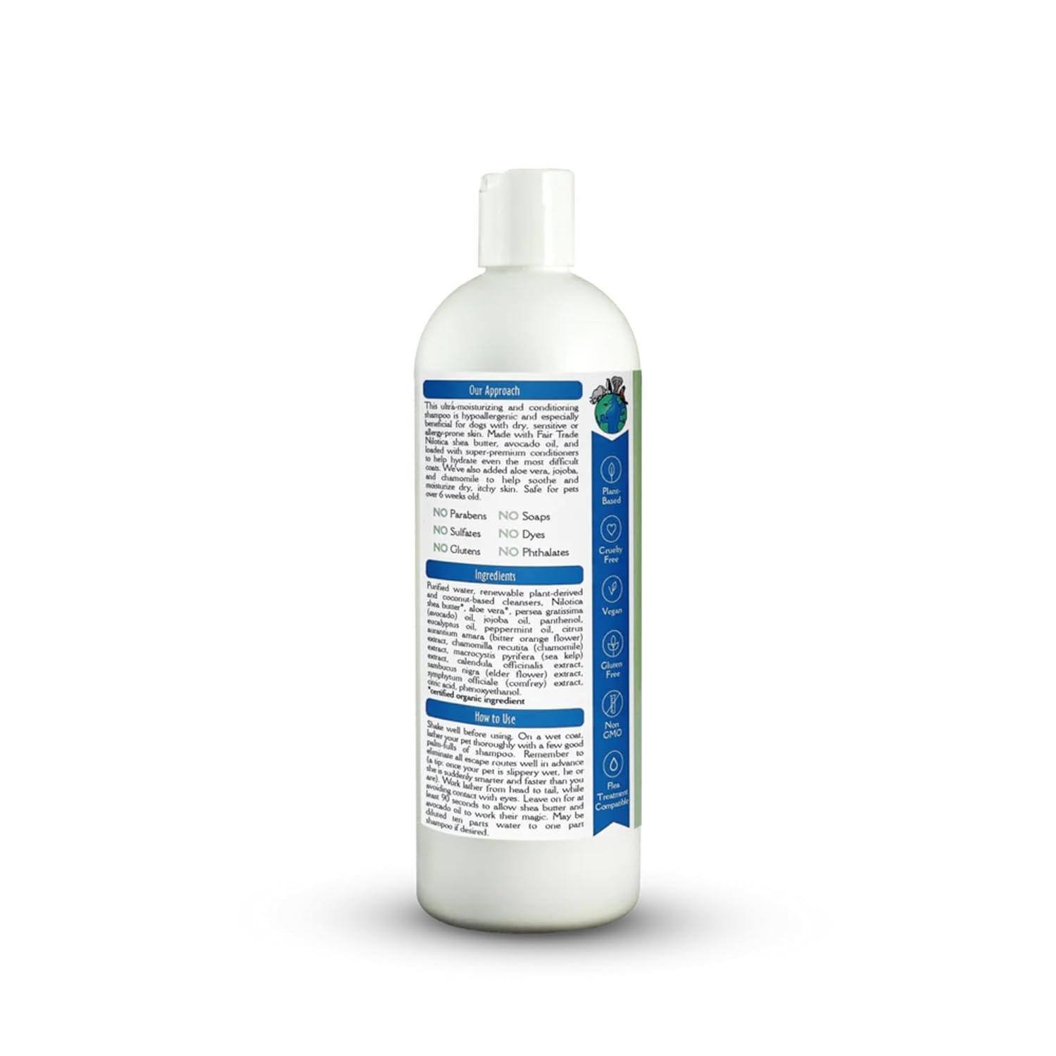 Experience the luxury of earthbath's Shea Butter Moisture Repair and Dander Care Shampoo, crafted to provide exceptional moisture repair and dander care for your beloved pets. Enriched with organic Fair Trade Nilotica shea butter, avocado oil, and super-premium conditioners, this formula deeply hydrates even the most challenging coats, leaving them smooth and lustrous. Our unique blend also includes organic aloe vera, jojoba, and chamomile, known for their soothing and moisturizing properties, to help alleviate dry, itchy skin. Perfect for dogs and cats of all breeds and coat types, especially those with dry, sensitive, or allergy-prone skin, earthbath's Shea Butter Moisture Repair and Dander Care Shampoo is a luxurious treat for your furry friends. Will not wash off topical flea applications. Safe for all animals over 6 weeks.