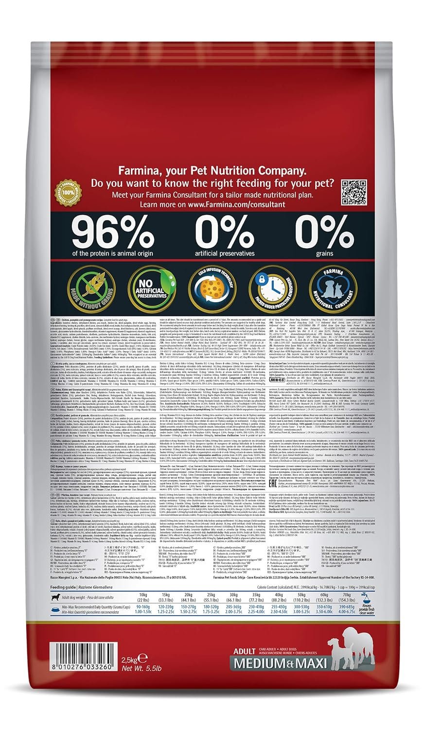 About FarminaFarmina is nature and science, our mission is to develop the best natural and scientifically validated nutritional systems. We use only high-quality raw materials wisely mixed and cooked in our kitchen with healthy methods while following strict guidelines provided by experts in dog and cat nutrition who know a carnivore's nutritional needs. |