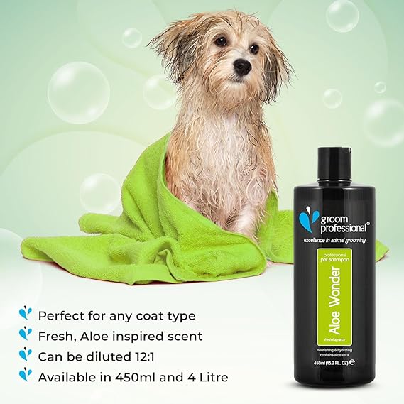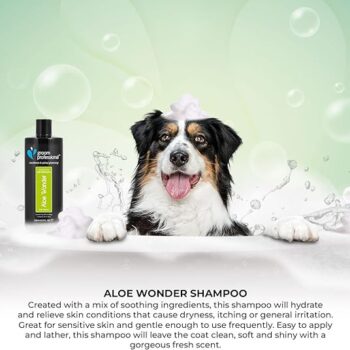 - MOISTURISES AND CONDITIONS: The Aloe Wonder shampoo helps moisturise and condition your dog's coat, leaving it soft, shiny, and easy to manage.