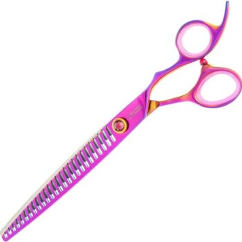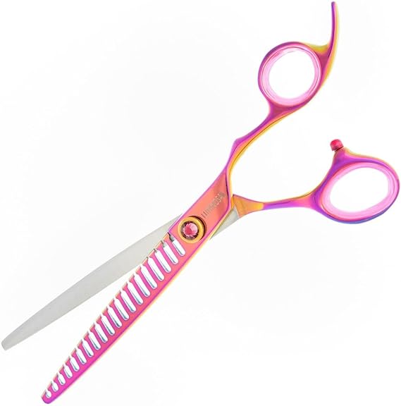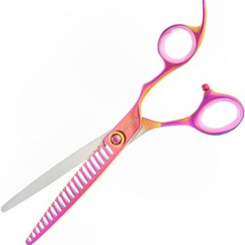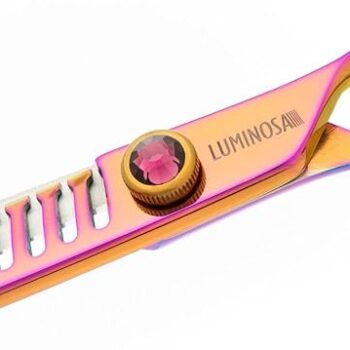 The most popular Groom Professional scissor range. Luminosas add style and substance to any salon. Finished with a luminescent rainbow coating and purple gemstone, these scissors are sure to stand out, while the Japanese Cobalt steel blades result in unrivalled cutting performance and durability. Luminosa Chunker scissor range Perfect for creating angles, these 20-tooth and 26-tooth chunkers deliver the ultimate quality and style. Just like all Luminosa scissors, these chunkers are made with Chinese VG-10 steel. The convex edge assists in cutting soft edges. Level 3 Scissors Chunkers Professional scissors Japanese Cobalt Steel Hardness.
