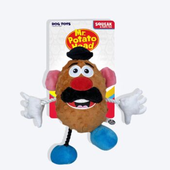 Mr. Potato Head is taking play to a whole new level - for pets! This classic character is now available as a plush dog toy! No need to piece him together, with its tug of war rope and squeak and crinkle noises, this toy is perfect for stimulating play. It also makes the perfect cuddle buddy for your little cuddle buddy!