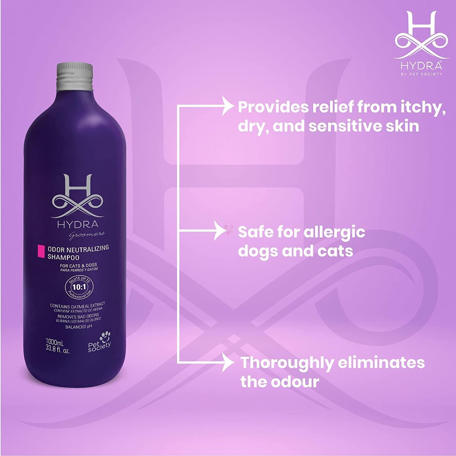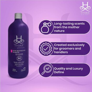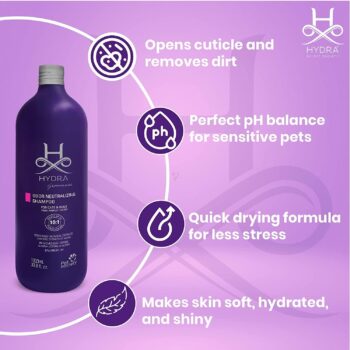 Hydra Professional Shampoos are every Pet Professional’s Absolute Choice, Infused with Salon–Grade Ingredients to experience a luxurious grooming experience for every pet & pet professional. This shampoo contains oatmeal extract and provides relief for itchy and sensitive skin. Oatmeal helps reduce irritation while promoting moisture and hydration to the coat. The shampoo also contains other raw ingredients that help to remove odour, providing your pet with a long-lasting and enjoyable scent. No more harsh chemicals that overpower and dry out your pet's skin. Made specifically with pH balance in mind, our pet shampoo for dogs and cats will leave your pet's skin and fur soft, hydrated, and shiny. This formula also helps hair and fur to dry quicker, resulting in less stress for pets.
