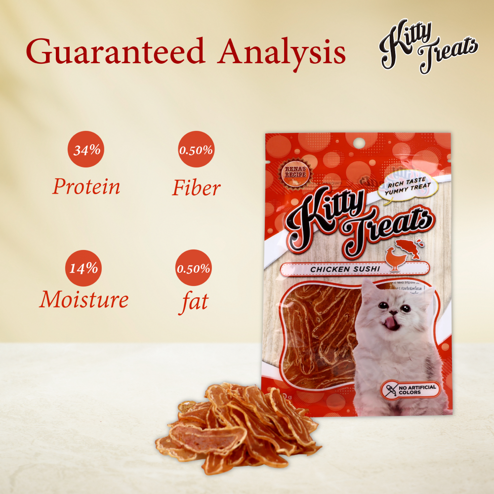 Kitty Treats is a delicious treat which is suitable for both adult and kitten above the age of 2 months. It contains chicken which are a source of highly digestible protein and thus helps in providing healthy bones and muscles. These Cat Treats Provide the Ideal Nutritious Treats for Your Cat; Healthy, Tasty and Always Safe.