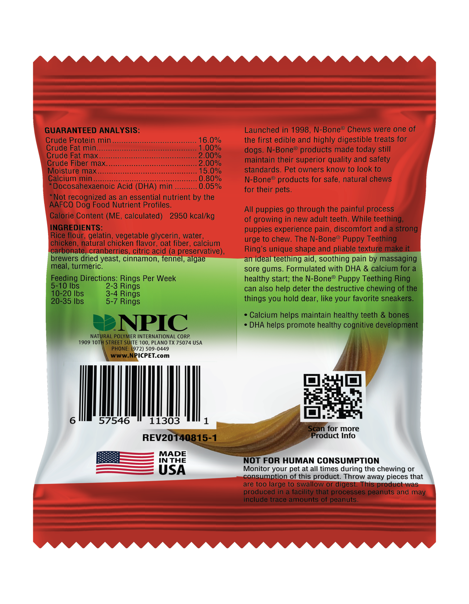 These teething rings are specially formulated with DHA and calcium to give your furry young friend a healthy start. They are also designed to meet the specific chewing needs of puppies. The flexible and pliable design is perfect for puppy's delicate gums and new teeth. N-Bone puppy teething rings are healthy dog treats that are a functional, edible, and highly digestible dog treat for puppies. These teething rings are free of rubber, nylon, or plastic.