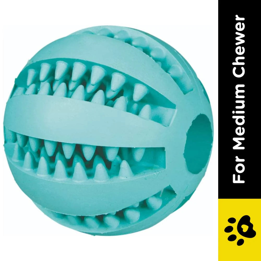 This fun ball which 100% rubber made natural, not only lets your pet enjoy the bite, but it also has a mint flavour in it, that makes the breath of your Dog soothing too. If your dog is active, or you want to make your dog active while taking care of its dental hygiene, this is the perfect ball you can let him play with.