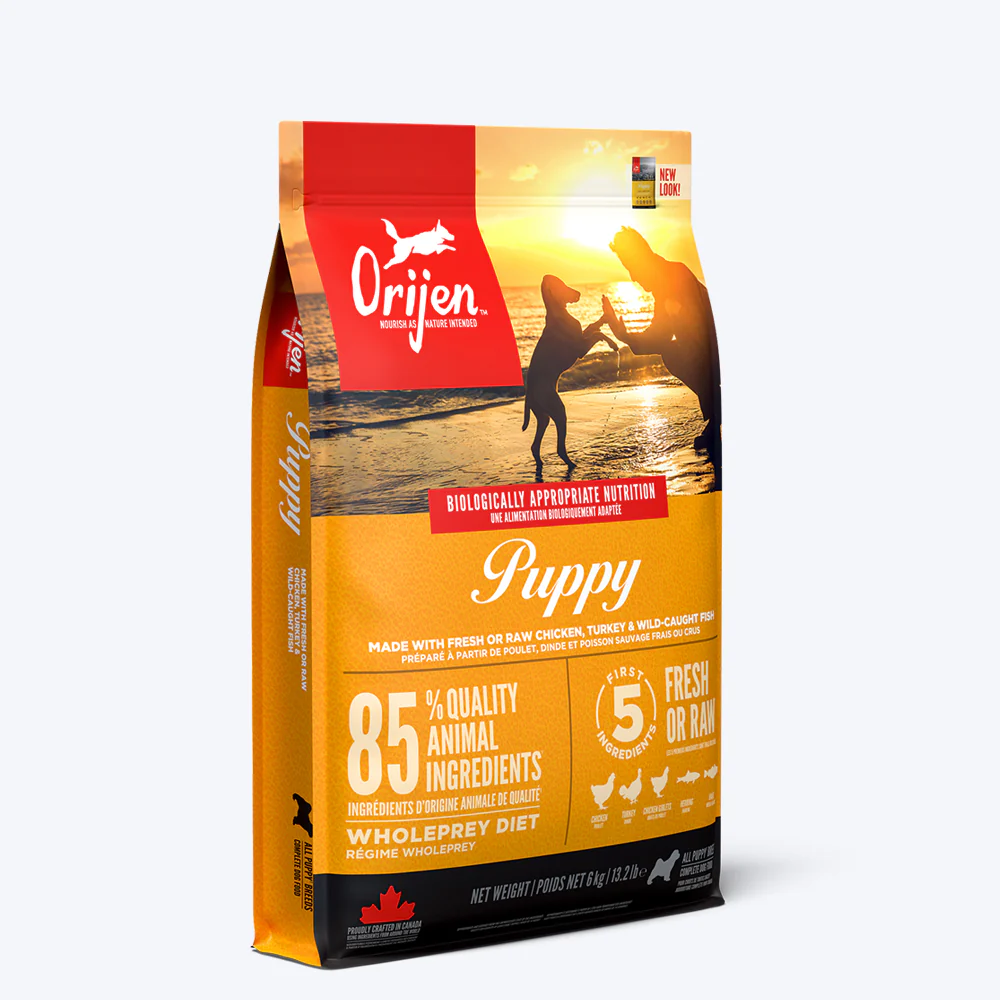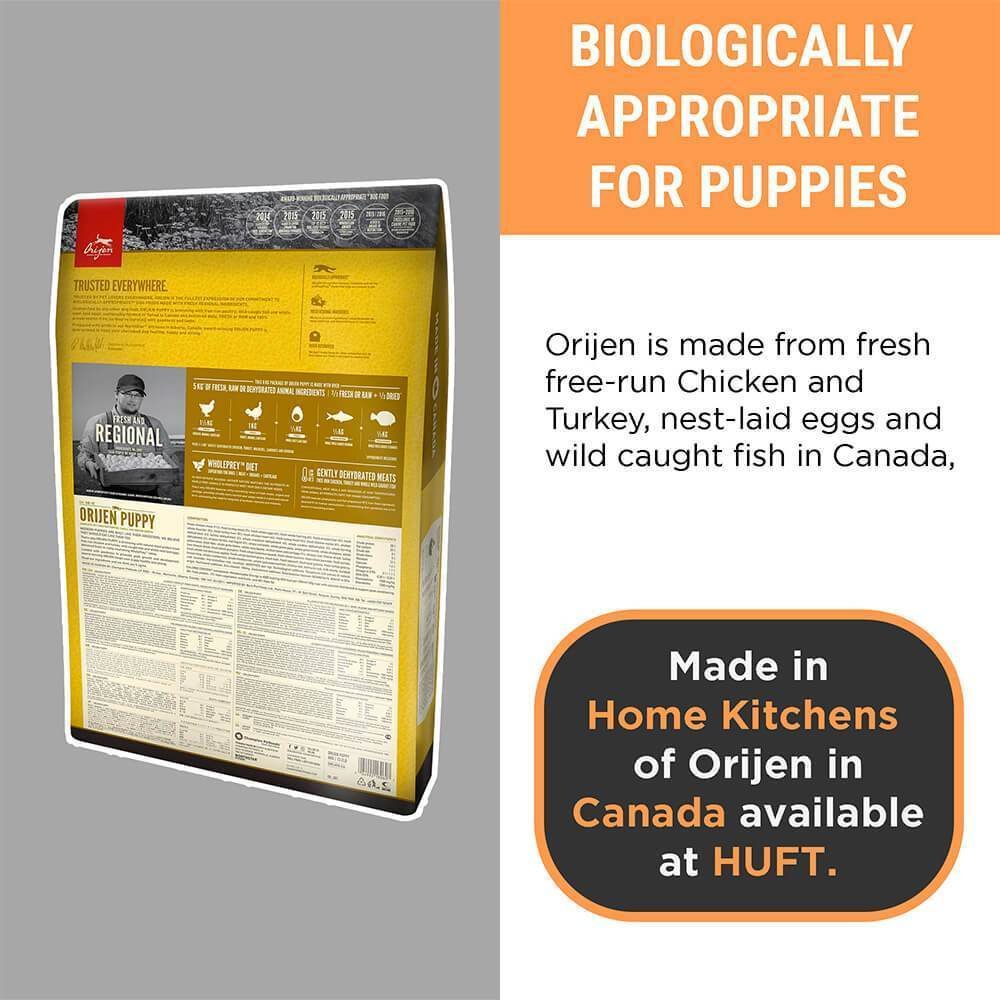 All puppies do best on a Biologically Appropriate diet: It is rich in protein and fat from quality animal ingredients to support peak development. ORIJEN Puppy recipe is packed with 85% quality animal ingredients like fresh or raw free-run chicken and turkey, wild-caught fish, and cage-free eggs. With rich inclusions of Whole prey animals, ORIJEN puppy food is made with the most nutrient-dense, succulent parts of the prey to deliver the nutrition dogs need. The result is a diet for your canine companion that is beyond comparison