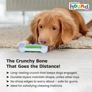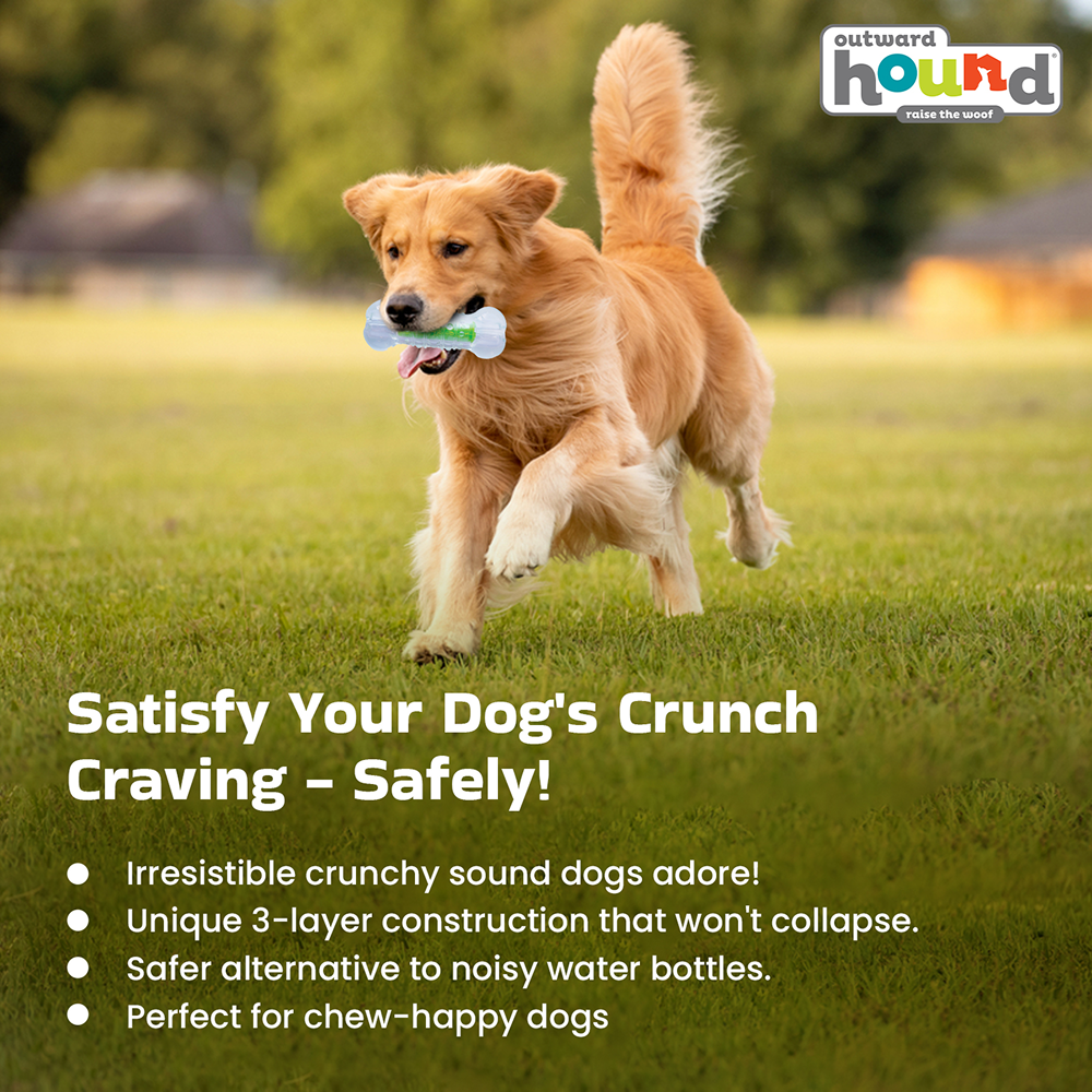 The Crunchcore Bone by Petstages offers the satisfying crunch dogs love without collapsing like real water bottles. Its multi-layered durable design ensures long-lasting fun while being safe for teeth and gums.