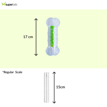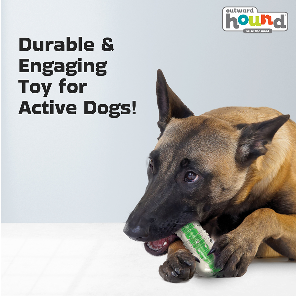 A crunchy, durable, and safe chew toy that keeps dogs entertained while lasting longer than traditional water bottles!