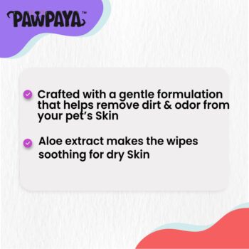- Pawpaya pet wipes are made for all dogs & cats with a gentle formulation that helps remove dirt & odour from your pet's skin. Added aloe extract makes the wipes soothing for dry skin too crafted with the vanilla scent cleans body parts, face, paw & bum.