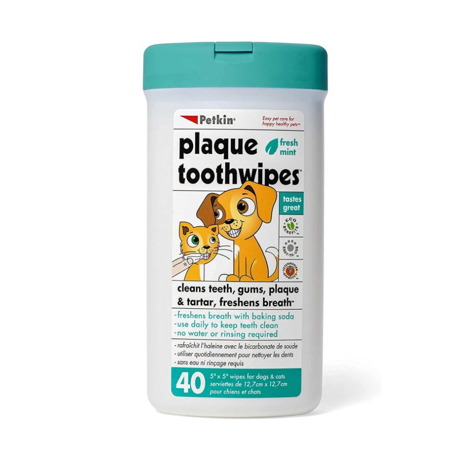 ToothWipes provide a convenient way to keep your pet’s teeth and gums clean and healthy everyday. Each soft wipe is moistened with a natural baking soda formula that gently cleans while freshening breath.