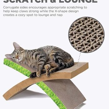 The Petstages Easy Life Hammock Cat Scratcher is a fan favourite among cats! Constructed from thick, corrugated cardboard to withstand cats weighing up to 20 lbs. and under, this 2-in-1 lounge scratching post keeps your kitty's claws healthy while providing a perfect place to perch. This cat scratcher bed is easy to assemble with two pieces that glide together to create the "X" design. Catnip is included to entice your kitty to build positive scratching habits and support a relaxing experience.