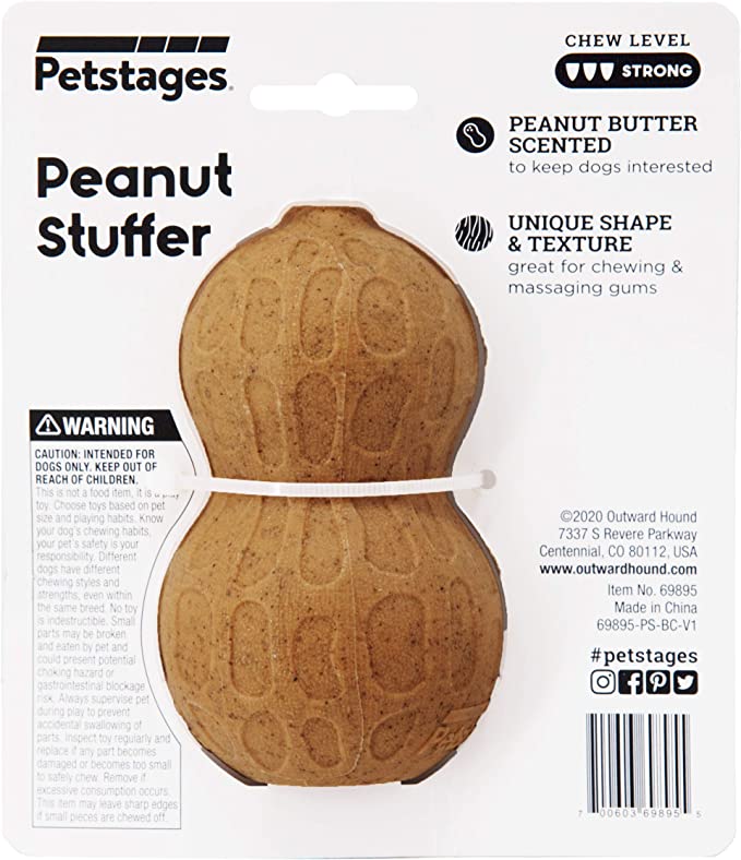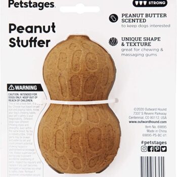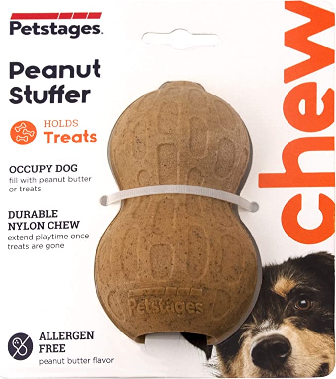 Petstages Peanut Stuffer Dog Toy is designed as a chew toy and a treat stuffer which keeps the most aggressive chewers engaged; it is a perfect play buddy for interactive games of fetch, toss and catch.