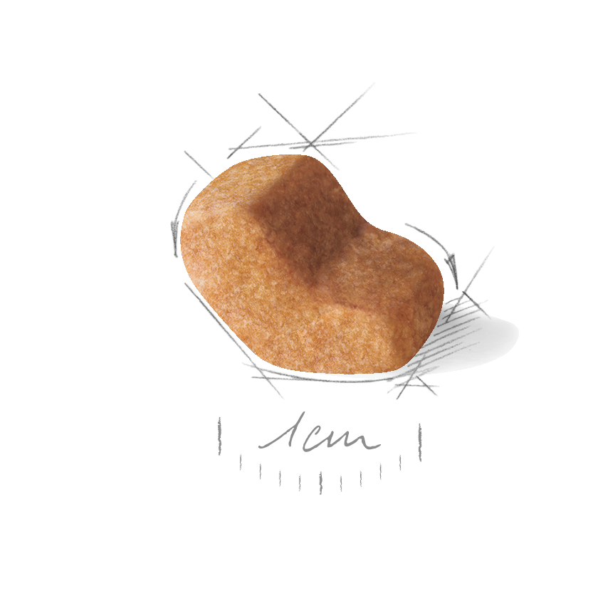 Exclusive kibble design: special brachycephalic jaw: A dog dry kibble exclusively designed to make it easier for the Shih Tzu to pick up and to encourage him to chew.