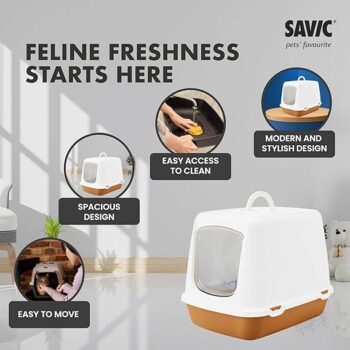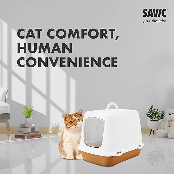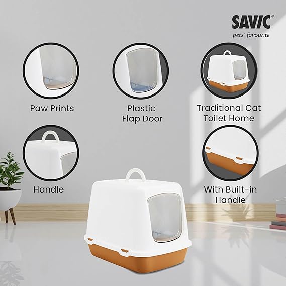 Savic Oscar Cat Toilet Home is the best substitute for a litter box. This decorative toilet is ideal for those who want to hide the litter box while still having the convenience of a cat toilet at home. Oscar is a classic hooded cat toilet with a plastic swing door and a replaceable filter to eliminate odors. Savic Oscar Cat Toilet Home is a great place for cleaning up after your cat and giving them privacy in their own space within your home, whether you have a cat or kitty.