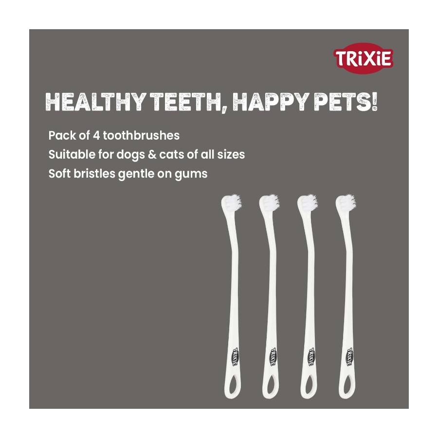 Trixie 4-Piece Toothbrush Set for Small Dogs & Cats 15 cm Gentle Bristles Ideal for Pet Dental Care White