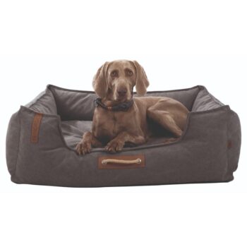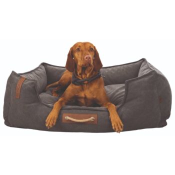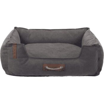 The Trixie BE NORDIC Fohr Dog Bed is dark grey with a stylish shabby-chic design. The trendy handle and rope complete the design. This bed features a number of compartments filled with foam flakes and offering highest comfort for your dog. The decorative canvas-look cover is robust and easy to care for. It can be easily removed for cleaning using the zip closure. The Trixie BE NORDIC Fohr Dog Bed has a lowered entry to make it easier for older or unwell dogs to get in, with a high border for leaning against. On the base of the bed you will find anti-slip feet, which help to keep it secure on your floor.