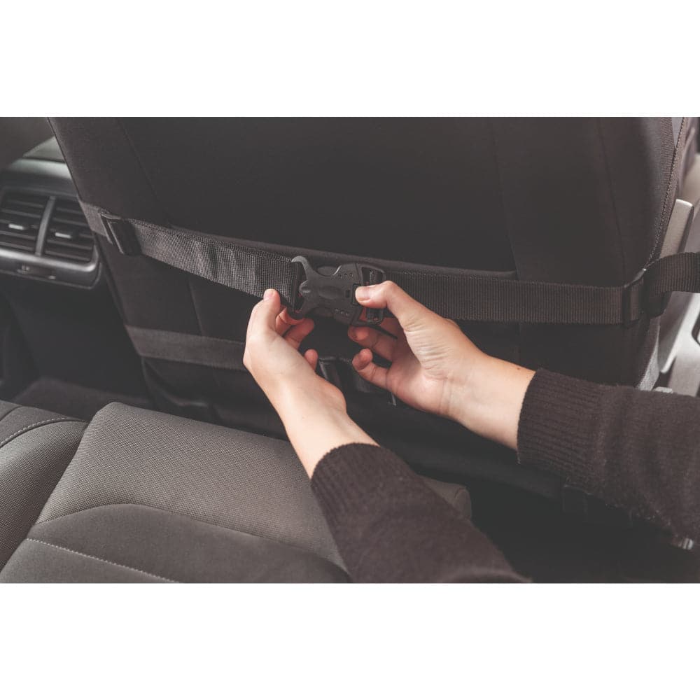 Its plastic discs on elastic provide better hold between seat and seatback. It is with reflecting piping. Easy fitting and removal.