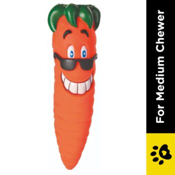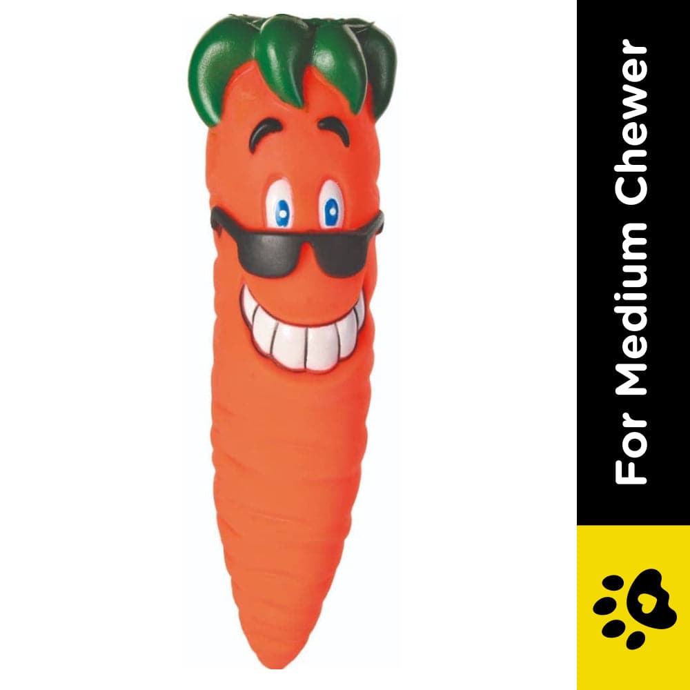 Trixie carrot snack dog toy made of vinyl material with sound especially suitable for sensitive dogs. A great throw and fetch toy for your pet dog, easy to grab and see and easy to throw and pick up with hand strap. These fun toys are great for interactive games of tug and pull. It is a chew toy which can be used for pets training and teeth nursing.