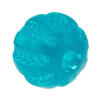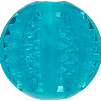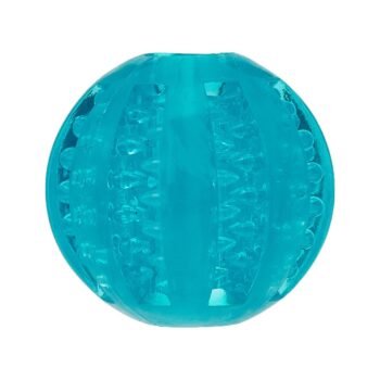 Promote healthy teeth and fresh breath with the TRIXIE Denta Fun Ball. Crafted from durable, non-toxic TPR (thermoplastic rubber), this 6 cm ball is infused with a refreshing mint flavour to enhance your dog's chewing experience. Designed with ridges and textured surfaces, it naturally helps reduce tartar and plaque while your dog plays. Perfect for fetch or solo chewing, it’s ideal for small to medium breeds. This dental ball provides an effective and fun way to support oral hygiene, keeping your pup happy, engaged, and smiling with every chomp.