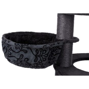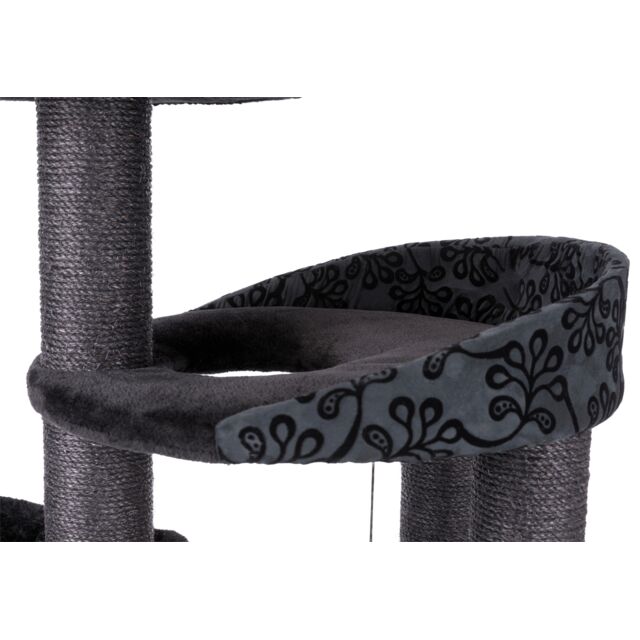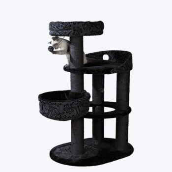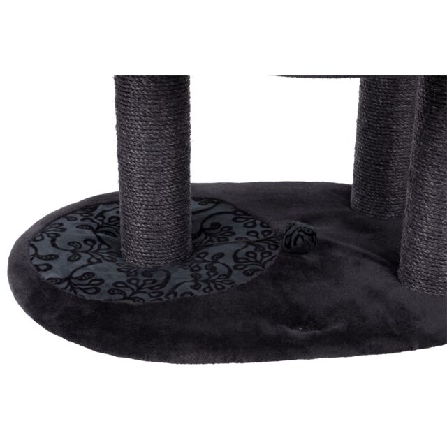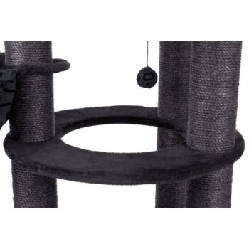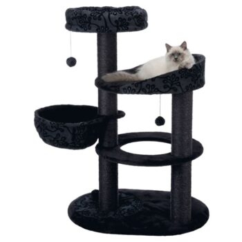 The natural sisal wrapped posts are great to exercise their claws. The platforms are covered for softness and comfort. A bed for catnaps on the top platform can be removed for washing. The base is padded with rustling foil to add to entertainment. An extra deep hammock and toys on strings add to entertainment.