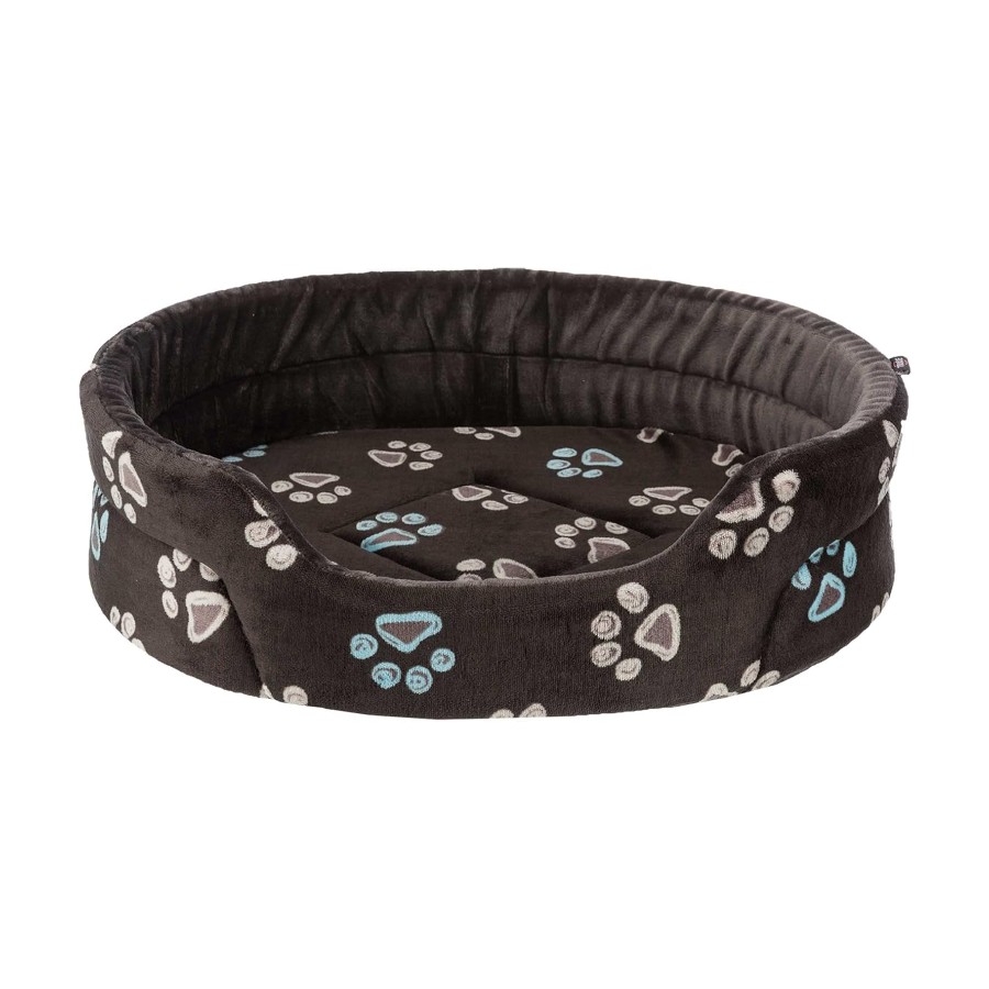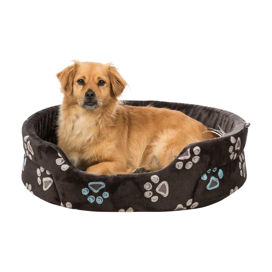 Jimmy dog bed with reversible cushion, grey: this dog bed is pleasantly soft and comfortable thanks to the soft foam filling. The neutral grey tone matches any furniture and the paws are a subtle eye catcher. The cushion can be removed and therefore also easier to clean from dirt and the like. The cushion is completely stable due to the non-slip nylon base. Advantages at a glance. Soft plush cover foam filling. Removable reversible cushion. Non-slip nylon base. Dog bed fabric