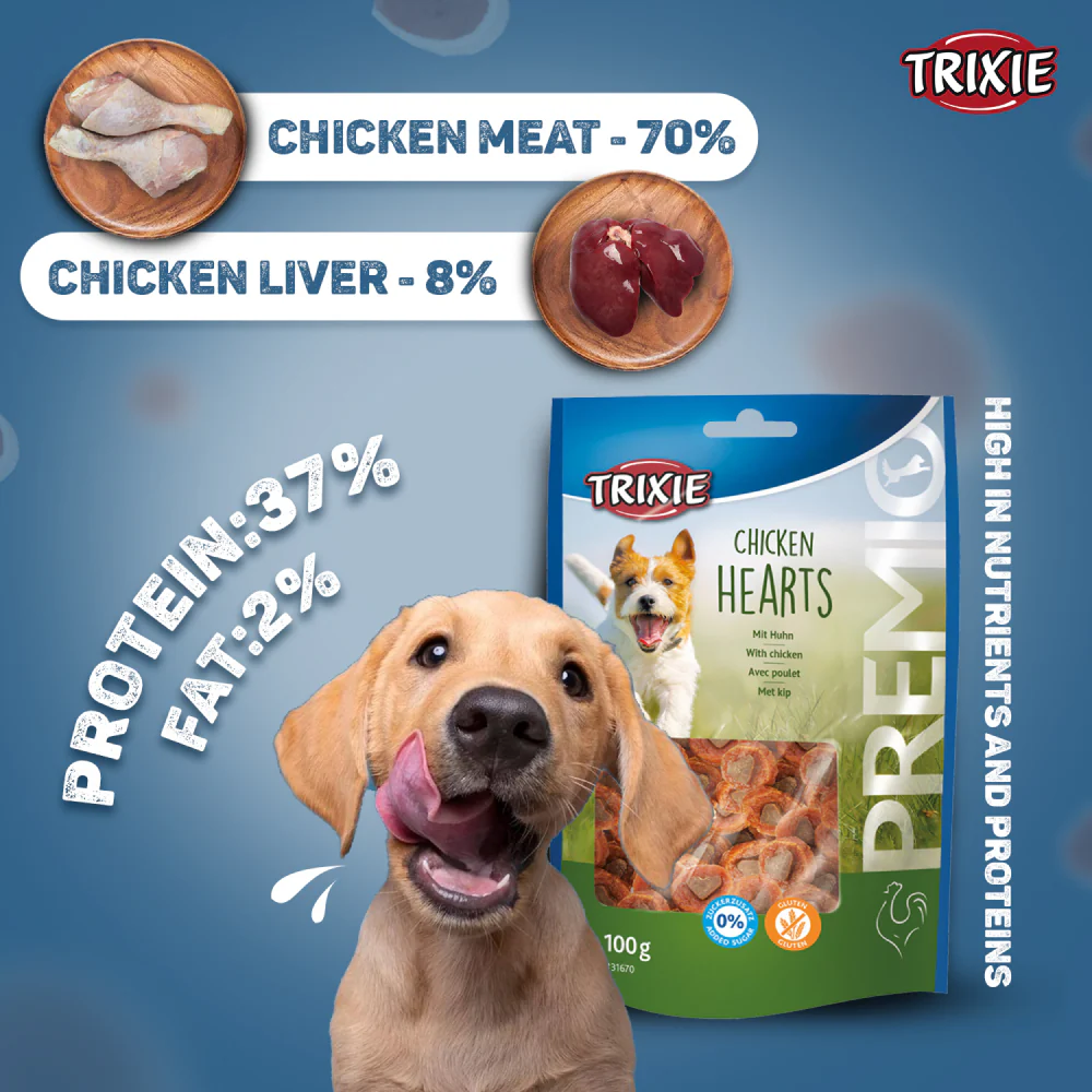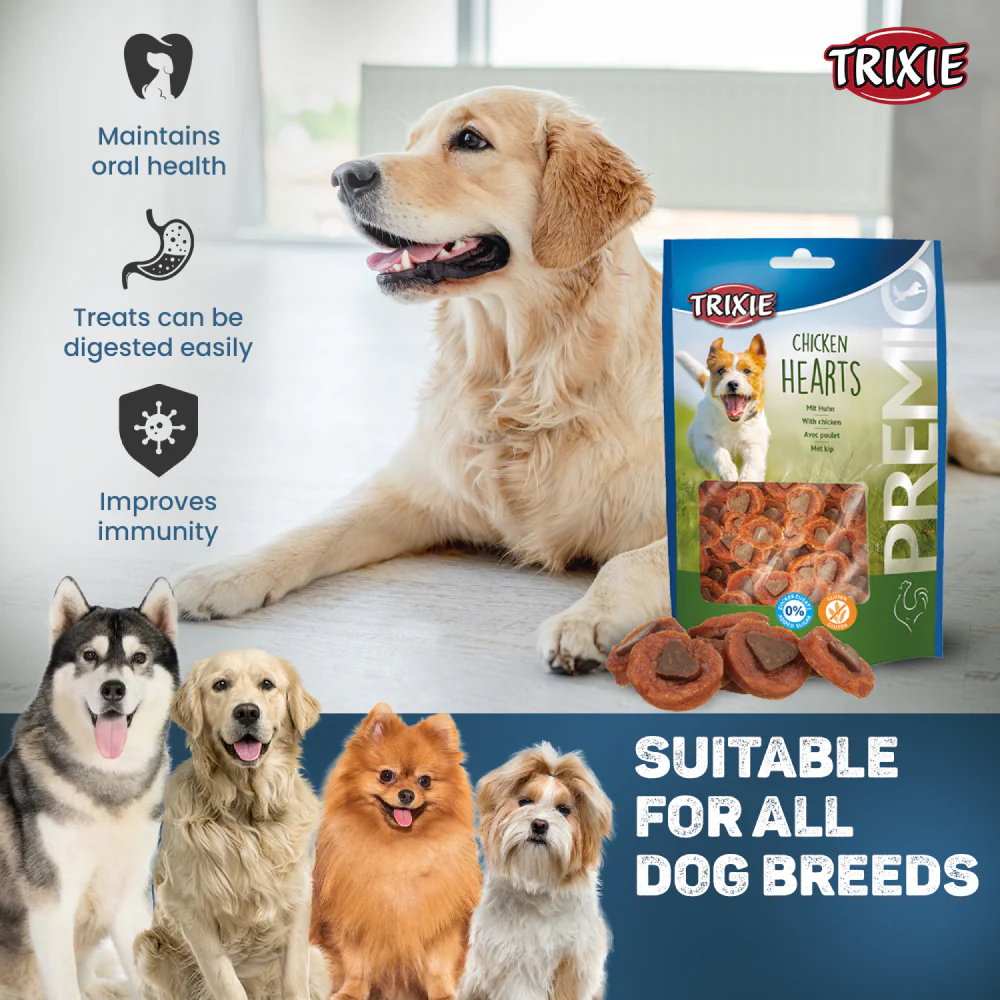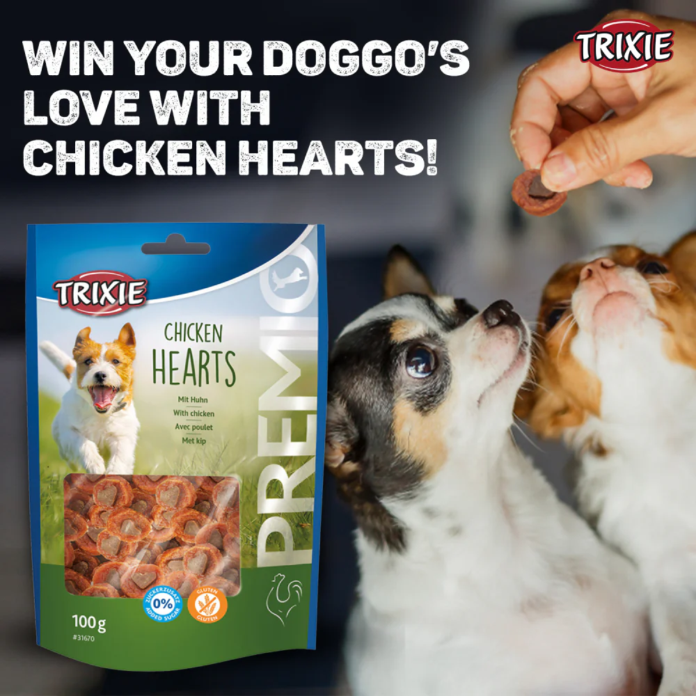 For dogs of all breeds, Trixie Premio Chicken Hearts Dog Treats are a tasty and wholesome treat. These high-quality, high-protein treats are made from chicken hearts, so your pet is sure to love them.