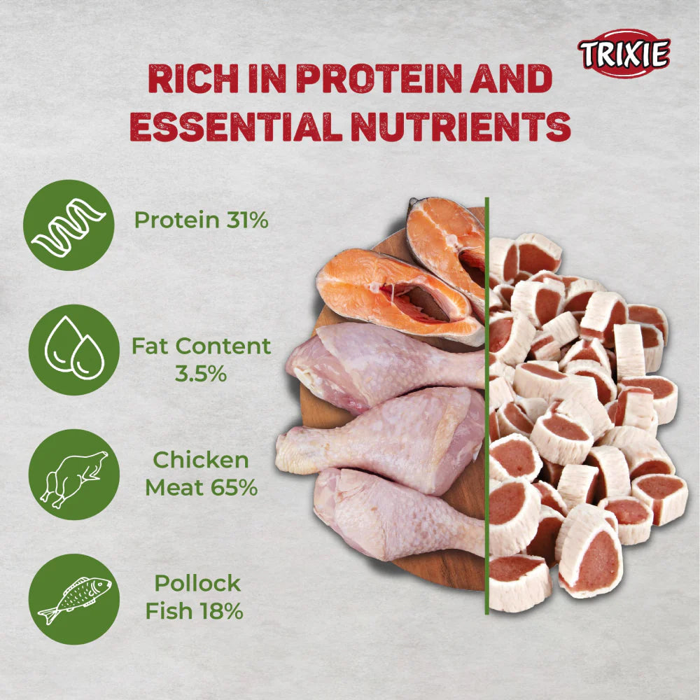 Spoil your beloved cat with Trixie Premio Cat Treats, crafted to be delicious and rich in essential nutrients. Suitable for cats of all breeds, this pack of 2 includes Fish Chicken Rolls, made from high-quality ingredients to provide your feline companion with a tasty and healthy snack option.