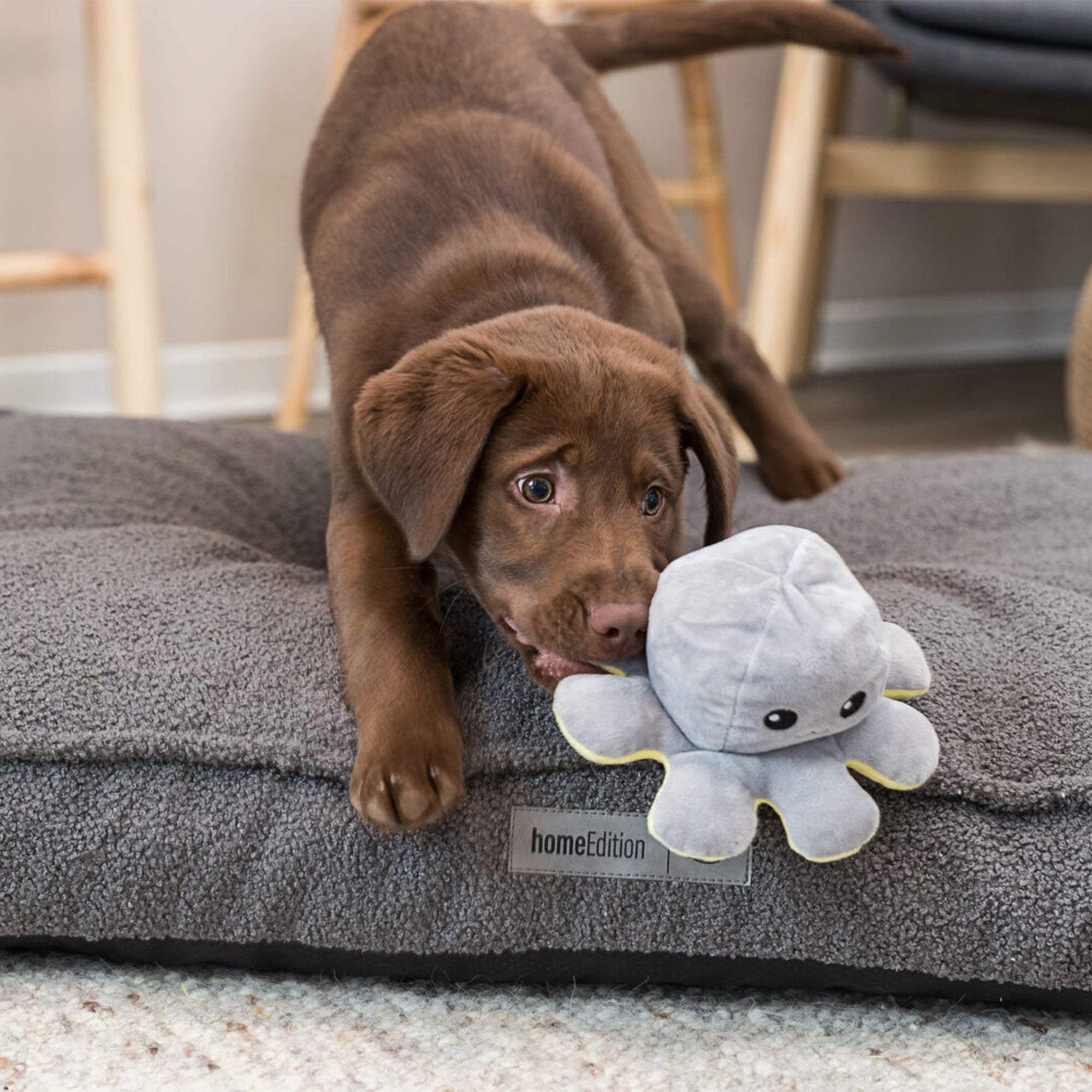 The plush Reversible Octopus is made from super soft plush fabric with polyester filling. Kind on your puppy's mouth. Can be turned inside out to show a completely different colour.