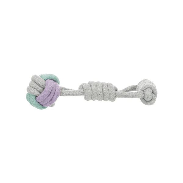 This rope dog toy help to keep dog's teeth clean. Made for Cotton/Polyester. Comes with hand loop.For many dogs, games of throwing and retrieving are simply the best! Nowadays, there is much more to this than throwing a simple stick. Various balls, dog discs, ball catapults, dummies, play ropes and other TRIXIE toys not only increase the excitement, but also make the games safer and more comfortable for owners and dogs.
