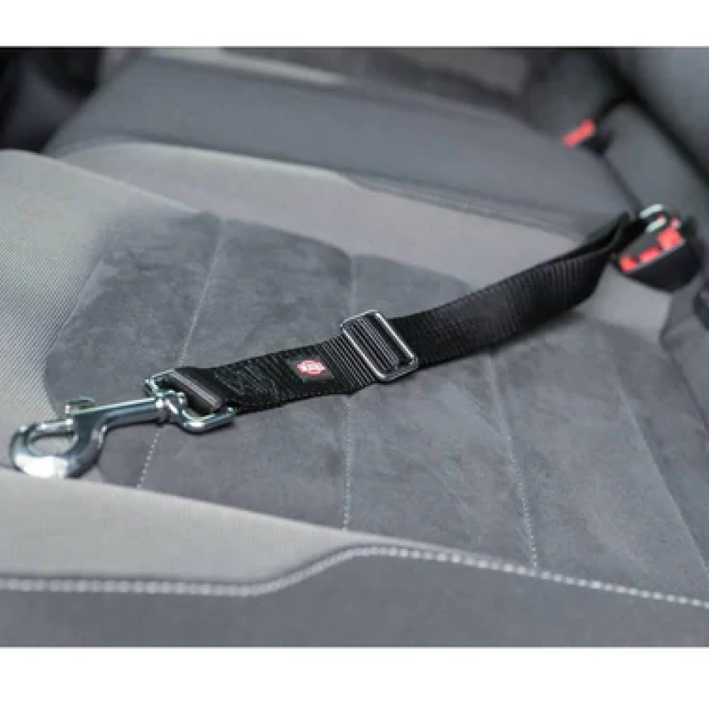 The Car Safety Harness is made of durable nylon. The harness has extra padding and is fully adjustable in the chest and stomach area. It is easy and fast to use and bring your four-legged for a safe car ride.