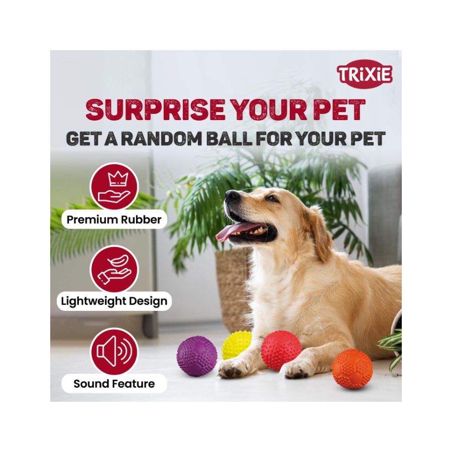 Trixie Sport Ball Natural Rubber Toy with Sound for Pet Dog/Cat,ø 7 cm