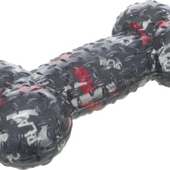- This bone is made up of three durable layers of rubber and plastic to prevent the toy from losing its shape and to keep your dog engaged for longer.