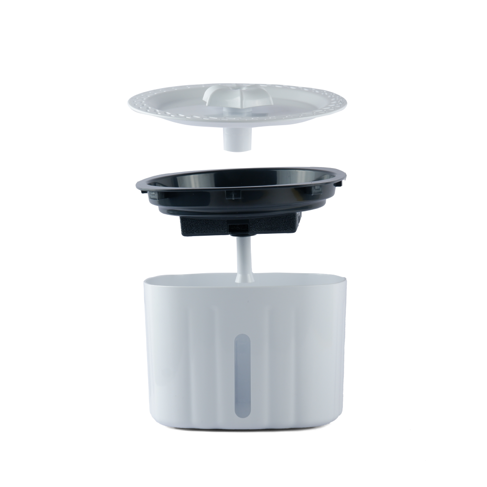 A drinking water fountain for dogs & cats that is made of plastic and comes with a Level indicator for better content control. Enriches the water with oxygen. Cold water through the circulation and a filter cleans the water. With USB plug and mains plug.