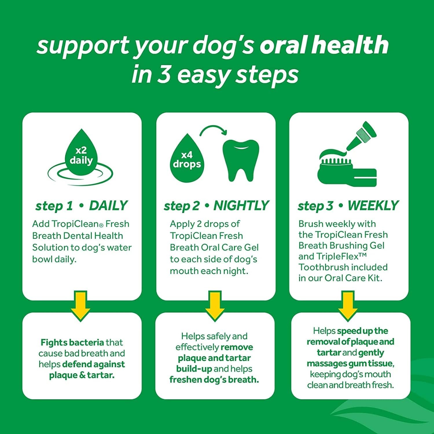 To address plaque and tartar before it starts. Oral care is about more than making your pets’ smiles sparkle—it’s an important component of their overall health. Clean teeth, fresh breath, no brushing! For puppies 12 weeks & up.