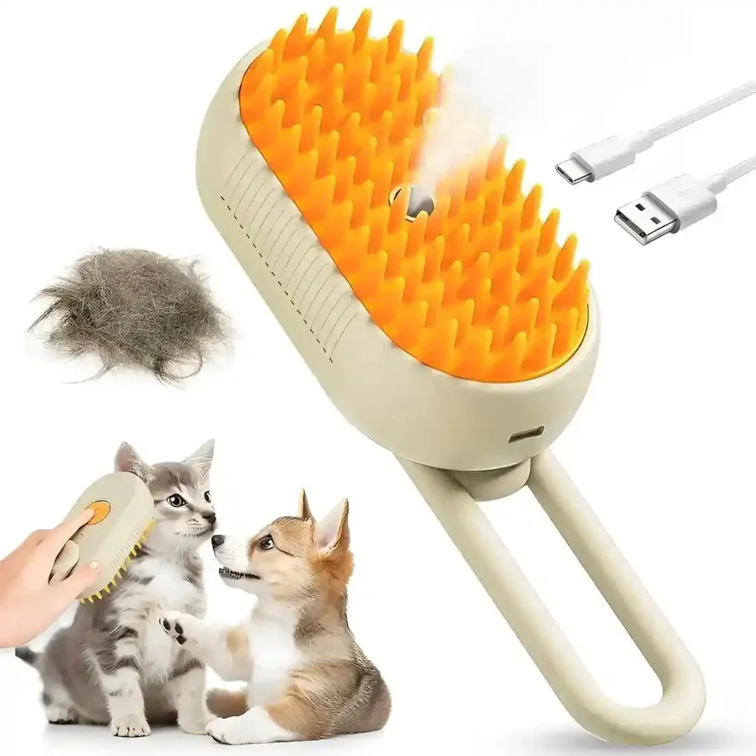 Wagging Master 3 in 1 Pet Hair Steam Grooming Brush for Dogs and Cats (White & Orange)