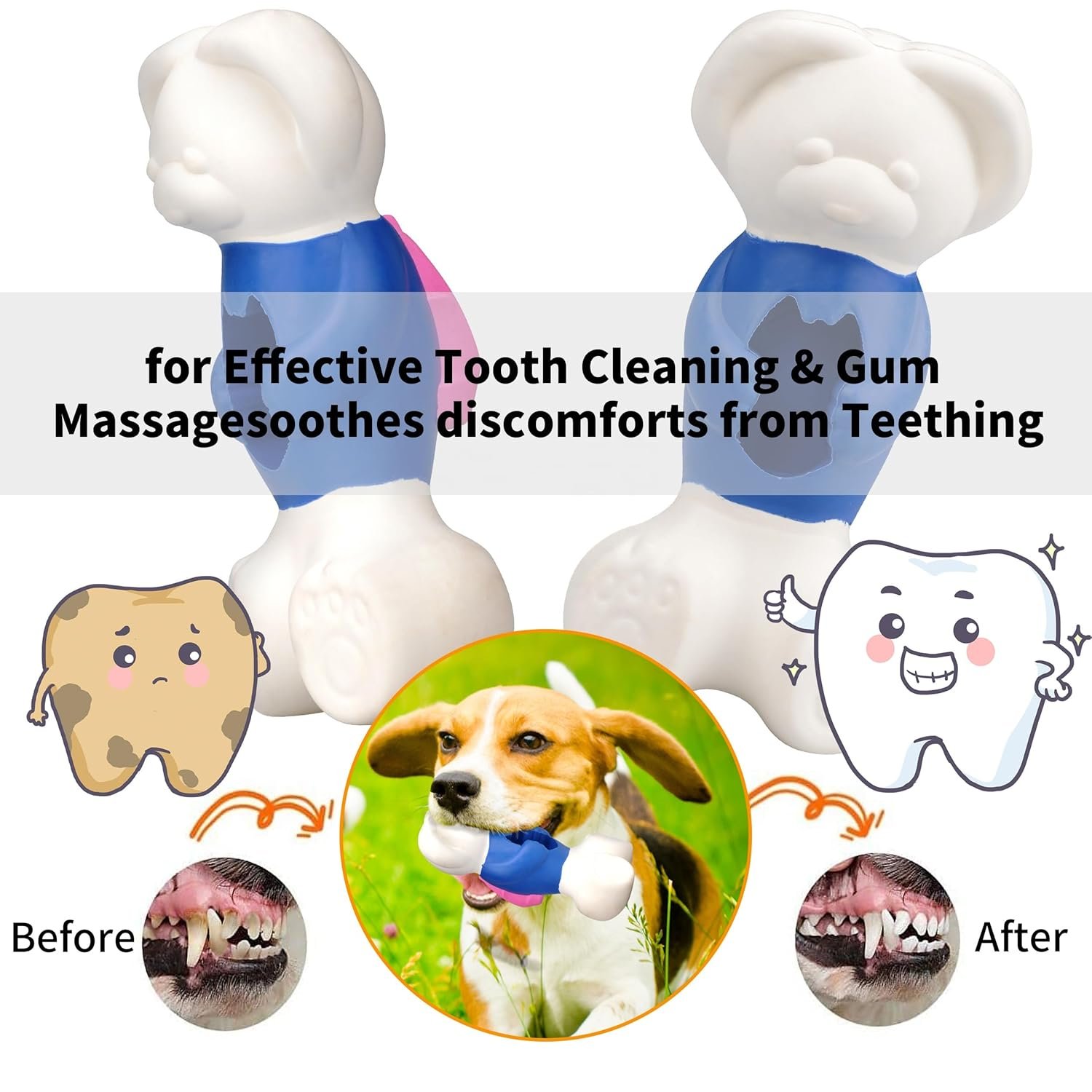 - Dental Health: These dog chew toys aren't just fun, they're functional. The texture helps clean teeth, promoting dental health while your dog enjoys their new favorite toy. They also serve as dog toothpaste help to clean their teeth , very engaging chew toys for puppies and dogs as well.