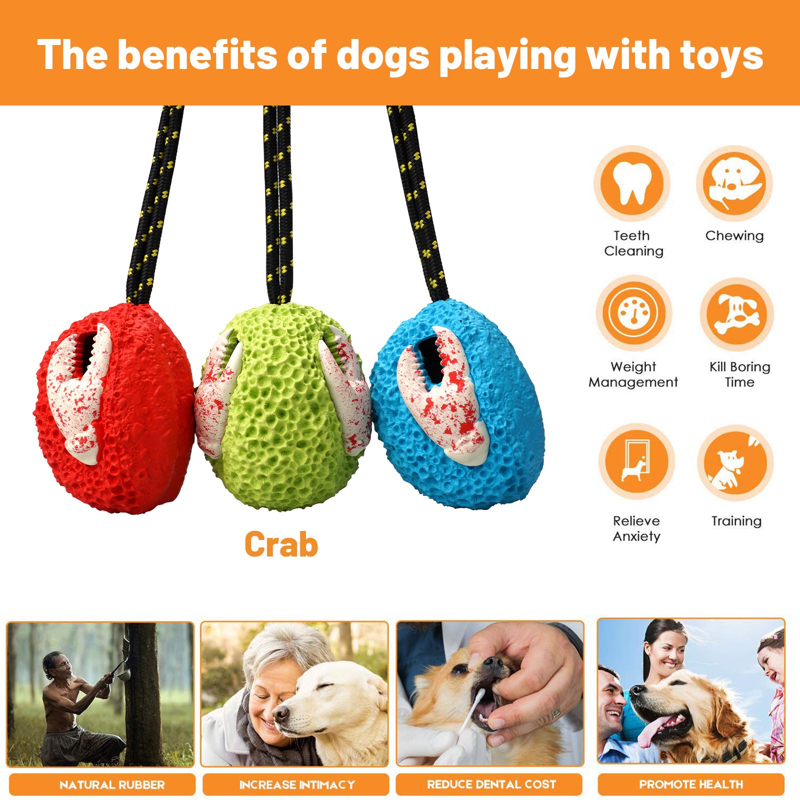 Wagging Master Crab Tug of War Natural Rubber Tough Chew Toy is made to provide endless fun for your furry friend while standing the test of time. Crafted from 100% natural rubber and rigorously tested for durability, this toy is not just a plaything; it's a companion for your dog's playtime.