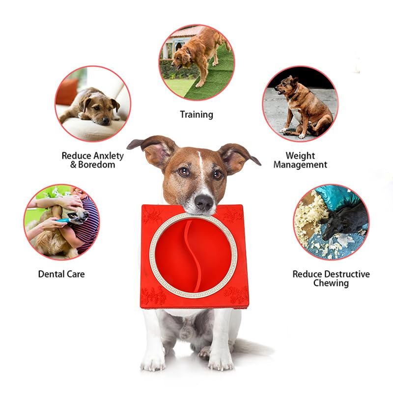 Wagging Master Slow Eating Dog Bowl | Non-Toxic Food Grade Natural Rubber Pet Bowl (Red, 2 Pocket)