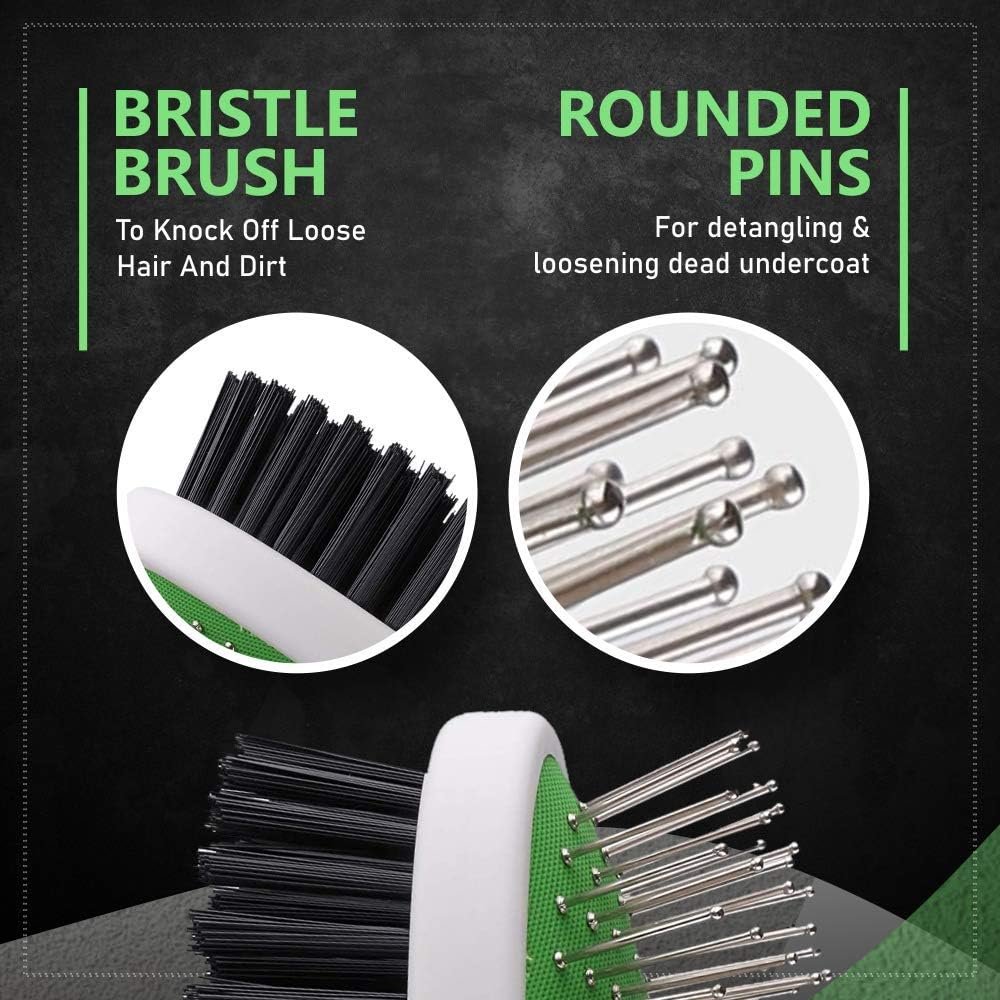 The pin side gently removes loose hair, tangles, and dirt, while stimulating natural oils for a healthier coat. The bristle side smooths and shines the fur, leaving your dog looking well-groomed and refreshed.